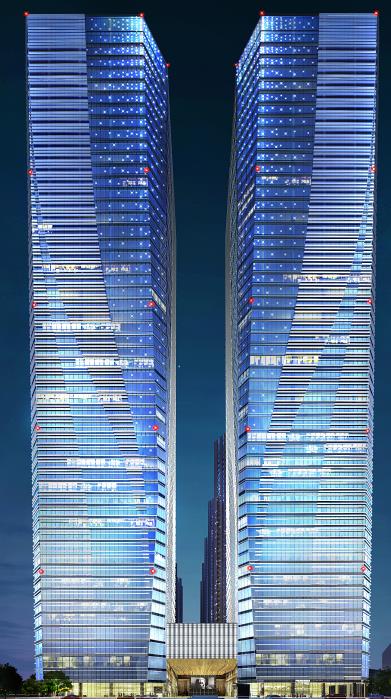 繼大同市體育中心照明工程順利竣工后,在全國第二屆青年運動會舉辦前夕,我公司又為扮靚太原貢獻一件燈光藝術品。 太原中海國際中心是中海地產在太原的又一力作,太原中海國際中心是一座雙子星辦公大樓,由