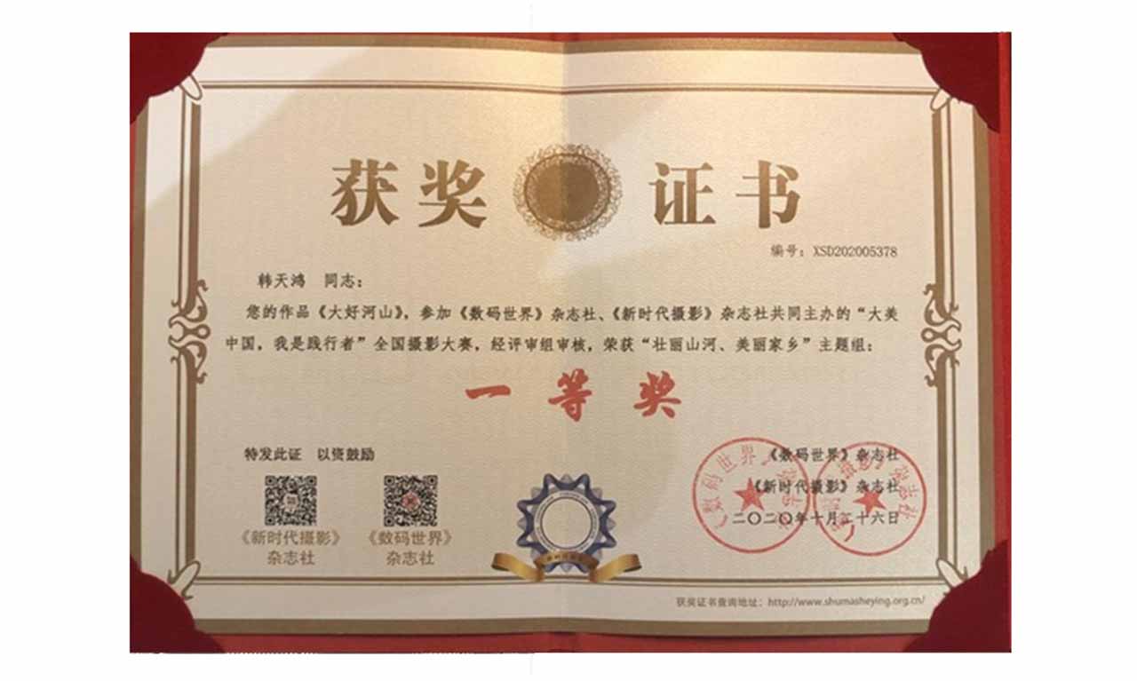 我公司董事長韓天鴻榮獲2020“大美中國,我是踐行者”全國攝影大賽一等獎! |