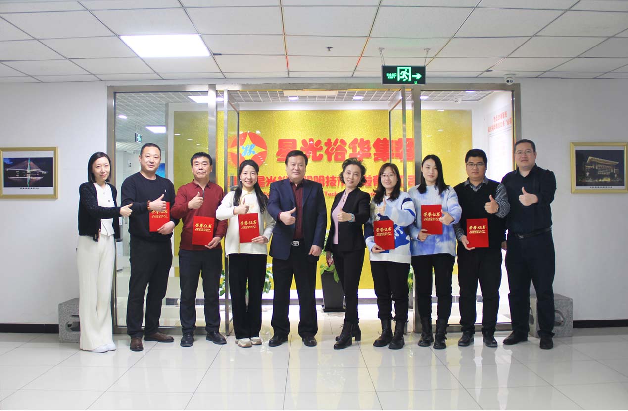 北京星光裕華照明技術開發有限公司二零二二年年度工作總結表彰大會于2023年2月10日召開,大會主要內容:一起回顧總結2022年這一困難非凡的一年中,公司戰勝困難取得的成績。董事長韓天鴻在大會上向全體員工規劃公司未來發展方向,公司將著重于傳統夜景照明、智慧路燈建設、智慧路燈充電樁、區域光伏發電這四大板塊的投資、建設、運營,爭取在三年內上市。大會對年度優秀員工進行表彰,對冬奧會場館、村設計建設做出突出貢獻的員工進行表彰。