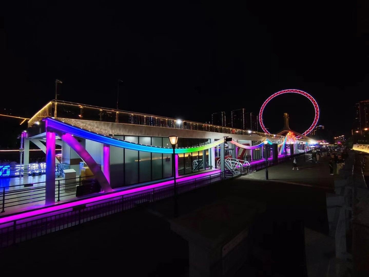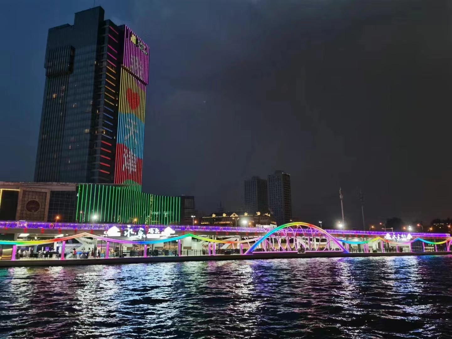 9月 30 日,天津海河文化旅游帶拓展提升改造工程(二期工程)景觀照明工程經(jīng)過近6個月的緊張有序的施工,項目重要節(jié)點已順利完工(津灣碼頭、大悲院碼頭等)。工程質(zhì)量、工程進(jìn)度、工程安全均按照行業(yè)最高標(biāo)準(zhǔn)實施部署,力爭達(dá)到行業(yè)一流水準(zhǔn)。星光裕華將一如既往地以高度的社會責(zé)任感和使命感,孜孜以求、大膽創(chuàng)新,將天津海河景觀照明打造成行業(yè)標(biāo)桿,為海河兩岸夜景增光添彩,為建國75周年獻(xiàn)禮。
