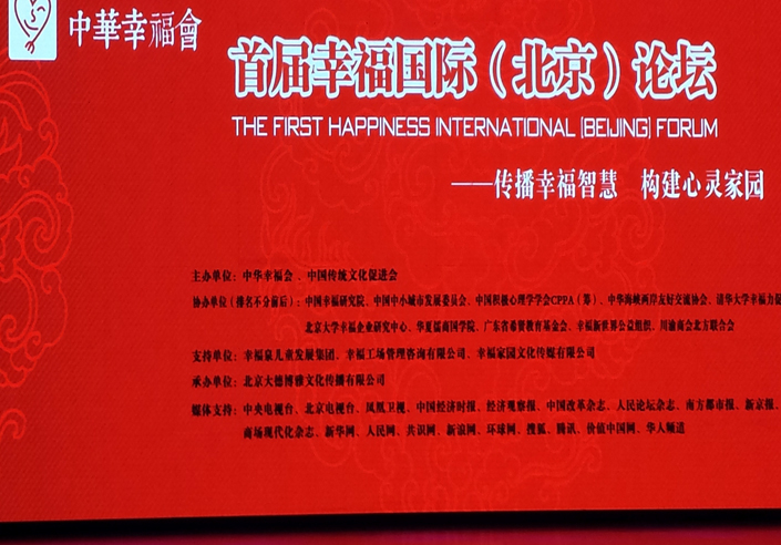 2014年6月28日,由中華幸福會與中國傳統文化促進會主辦、中國幸福研究院等單位協辦的首屆幸福國際(北京)論壇舉行。來自海內外的專家學者、企業家和社會各界人士1000多人參加,就幸福科學、幸福理念的傳播和實踐交流經驗,并對《21世紀幸福宣言》進行研討。