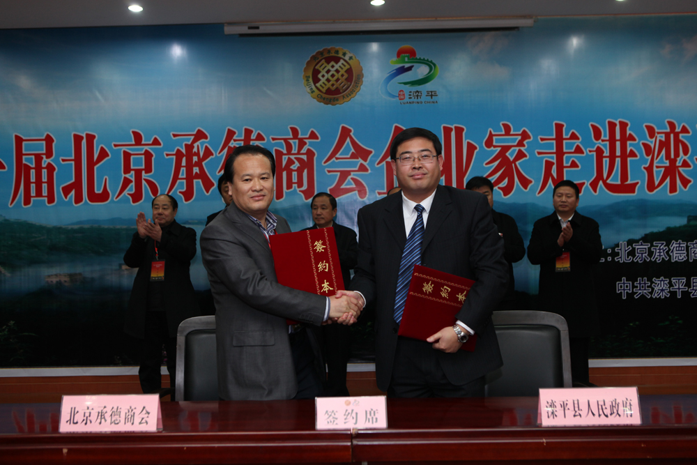 我公司董事長韓天鴻作為北京承德商會執行會長帶領北京承德籍企業家走進河北承德灤平活動。在大會上進行了演講,并代表北京承德商會與灤平縣政府簽署戰略合作協議。出席大會有承德市副市長劉新宇,承德市商務局局長高竣虎、褚瑞城及當地縣政府四大班子領導。