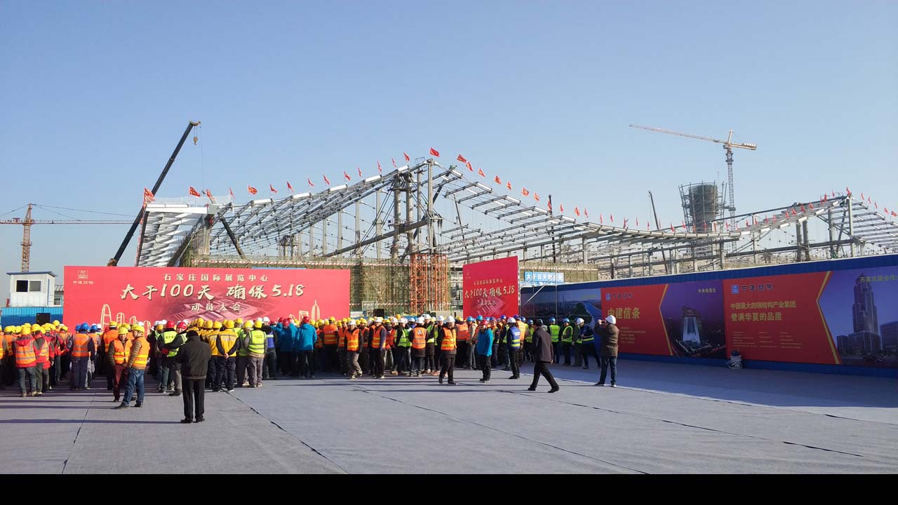 2018131日,石家莊會展中心是在建的北方最大會展中心、河北最大單體工程、全球最大的懸索結構展廳,這些多項第一的河北省重點工程將于2018518日迎來首屆大型展覽。目前各項建設任務繁重,為確保426日如期竣工交付,投資建設方中建浩運在值此倒計時100天之際舉行了現場軍令狀簽訂儀式的動員大會,各參建單位紛紛表態為了如期完成建設任務,確保展會的順利舉辦,將會配合整體工程進度克服一切困難完成建設任務。